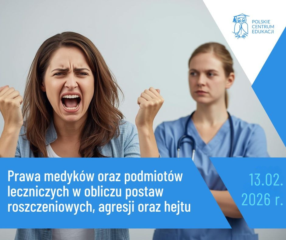 Jednym z poważnych ryzyk związanych z wykonywaniem zawodu medycznego jest narażenie w trakcie lub w związku z wykonywaniem obowiązków zawodowych na agresję ze strony pacjentów oraz ich bliskich. Równie dolegliwe dla podmiotów leczniczych oraz ich pracowników są coraz częściej występujące postawy roszczeniowe oraz hejt w internecie. Praktyka wykazuje, że ignorowanie takich zachowań powoduje jedynie ich eskalację. W trakcie szkolenia przedstawione zostaną optymalne sposoby reakcji na tego typu zdarzenia, w tym również zasady postępowania w kontakcie z takimi osobami oraz najskuteczniejsze sposoby służące ochronie godności oraz dobrego imienia medyków oraz podmiotów leczniczych.
